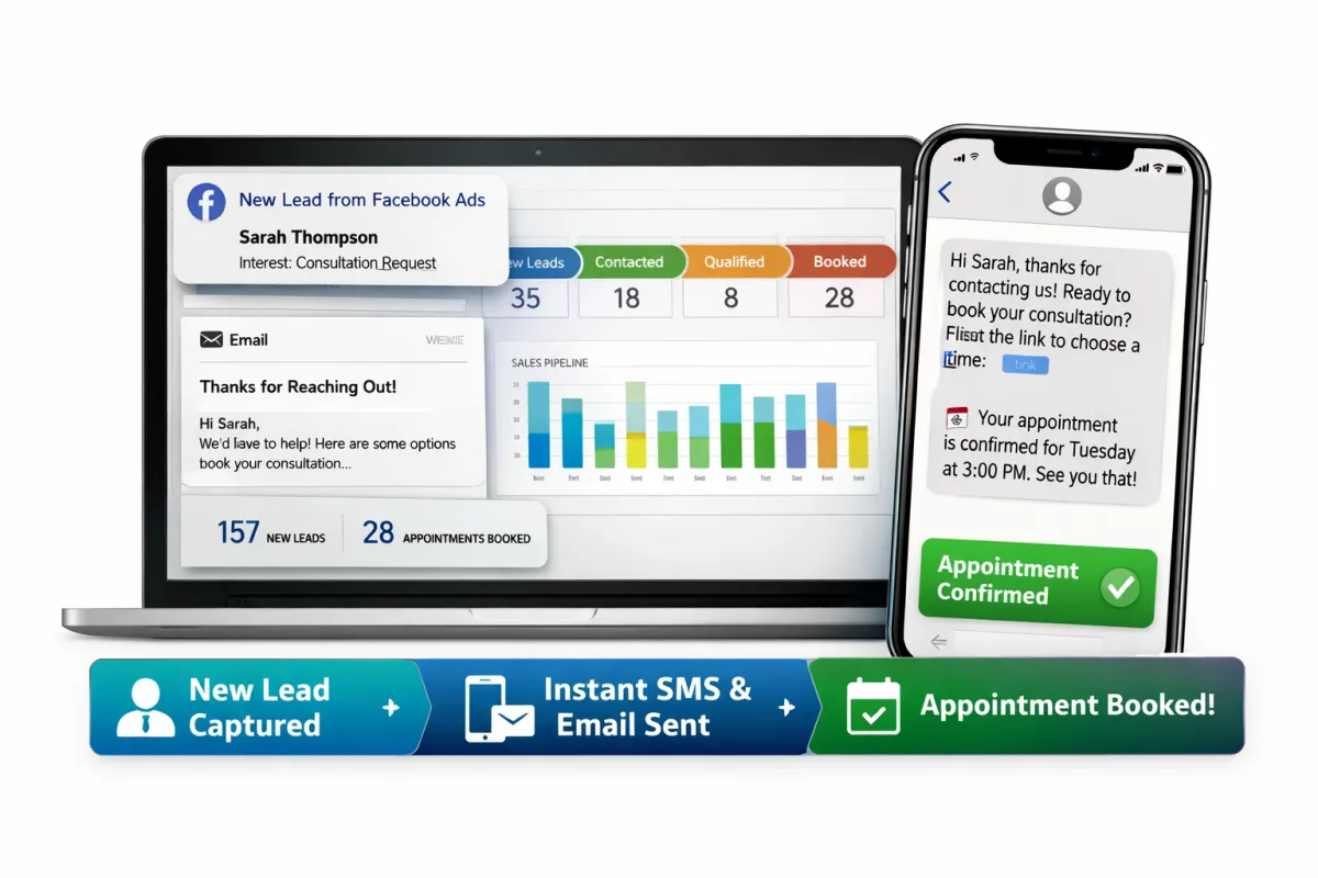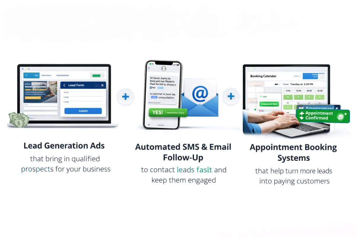 Our solutions are built to help businesses attract the right leads, respond instantly, and create a smoother path from first contact to booked appointment. By combining paid ads with automated follow-up, we help reduce missed opportunities and improve conversion from every lead that comes in.